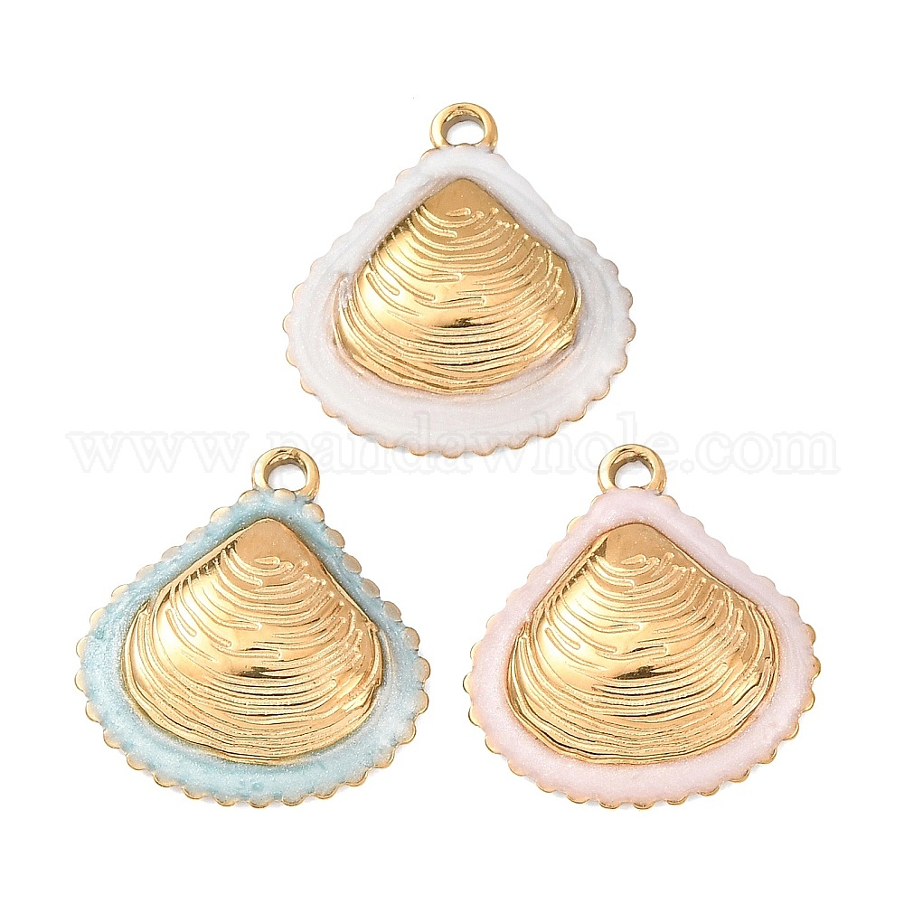 304 подвески из нержавеющей стали, с эмалью, подвески в форме ракушек, реальный 18 k позолоченный, ионное покрытие (ip)