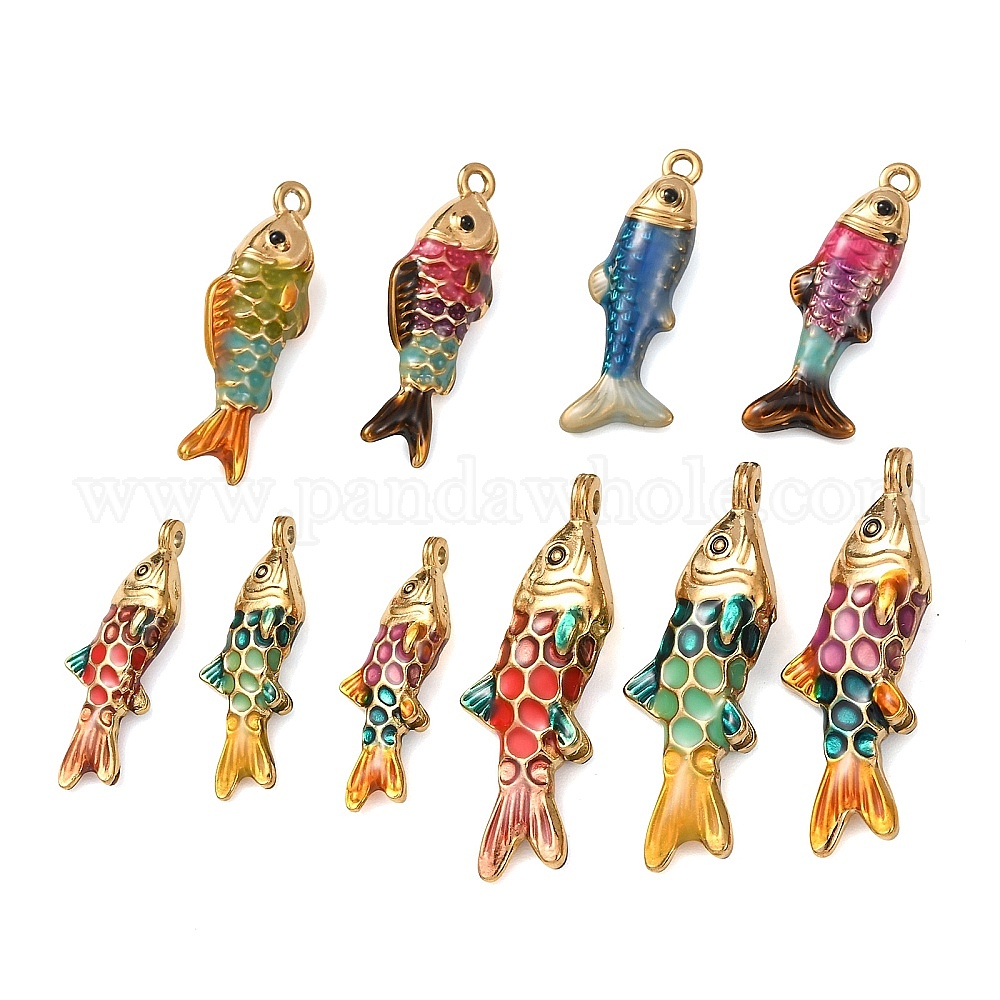304 подвески из нержавеющей стали, с эмалью, рыбы прелести, реальный 18 k позолоченный, ионное покрытие (ip)