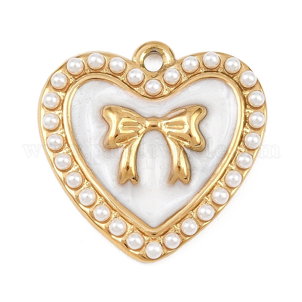 304 нержавеющей стальной эмали подвески, белые сердечки с имитацией жемчуга из АБС-пластика, ионное покрытие (ip), реальный 18 k позолоченный