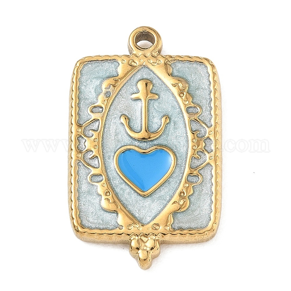 304 нержавеющей стальной эмали подвески, прямоугольник с сердцем и якорем, с блеском порошок, синие