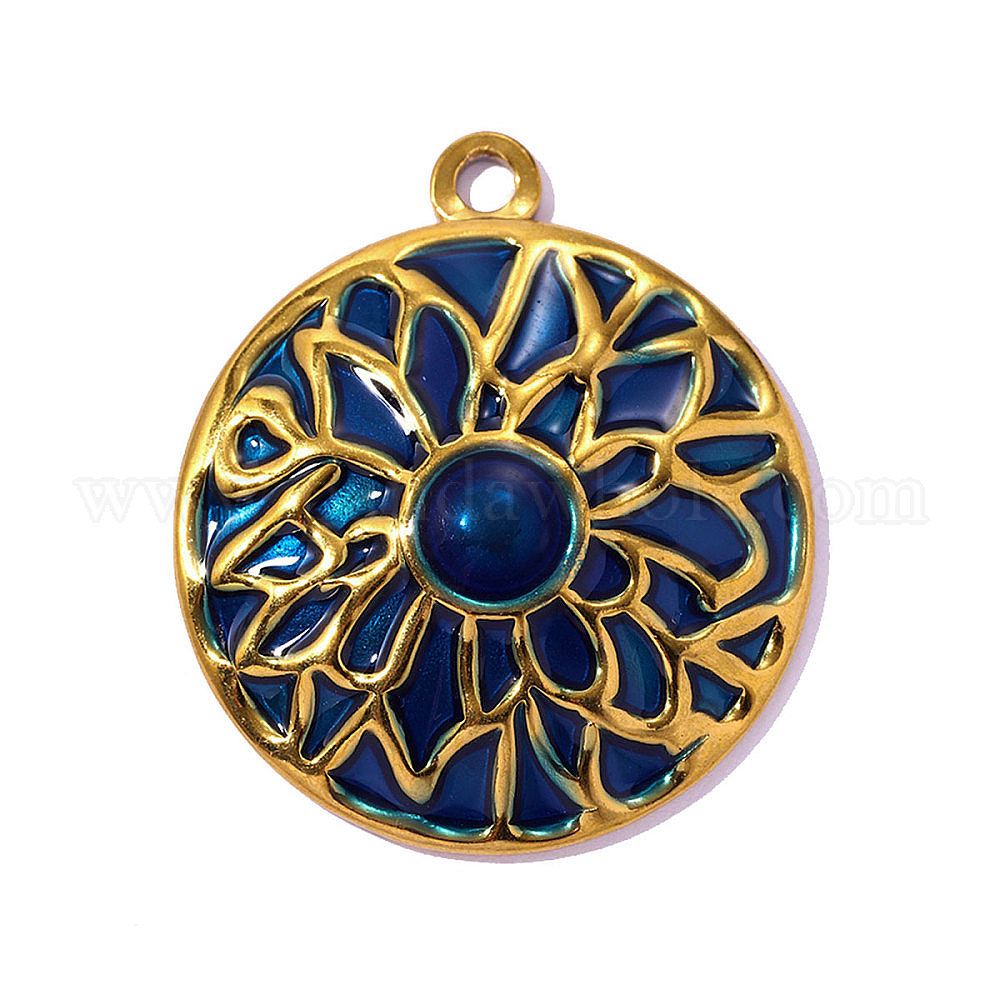 304 нержавеющей стальной эмали подвески, плоские круглые прелести, ионное покрытие (ip), зеркальная полировка, реальный 18 k позолоченный