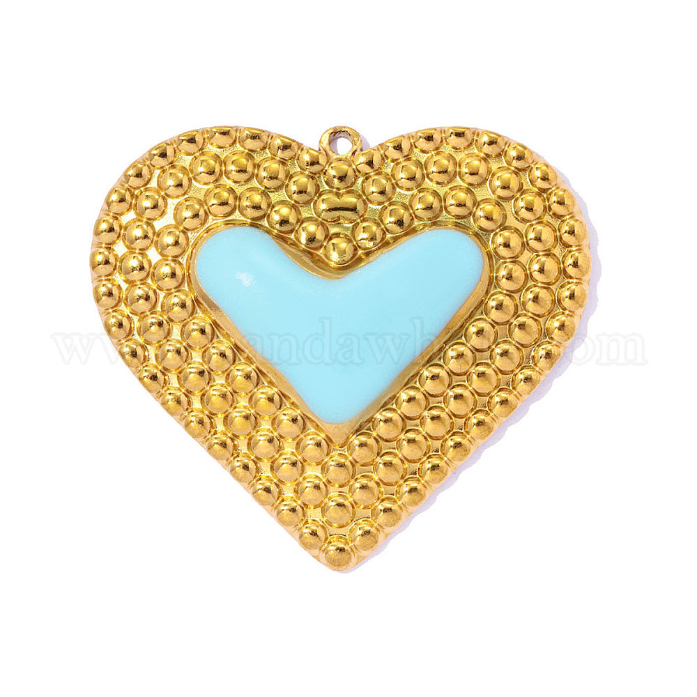 День святого Валентина 304 эмалевые подвески из нержавеющей стали, сердце прелести, ионное покрытие (ip), зеркальная полировка, реальный 18 k позолоченный