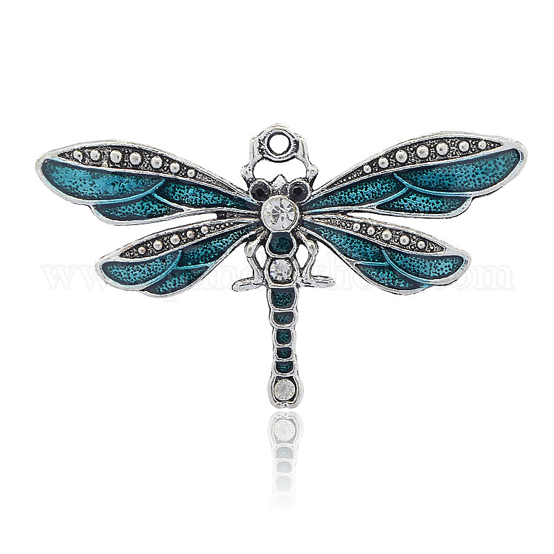Антикварная посеребренные сплава эмали стрекозы кулоны, со стразами, 42x72x4 мм, отверстие : 2 мм