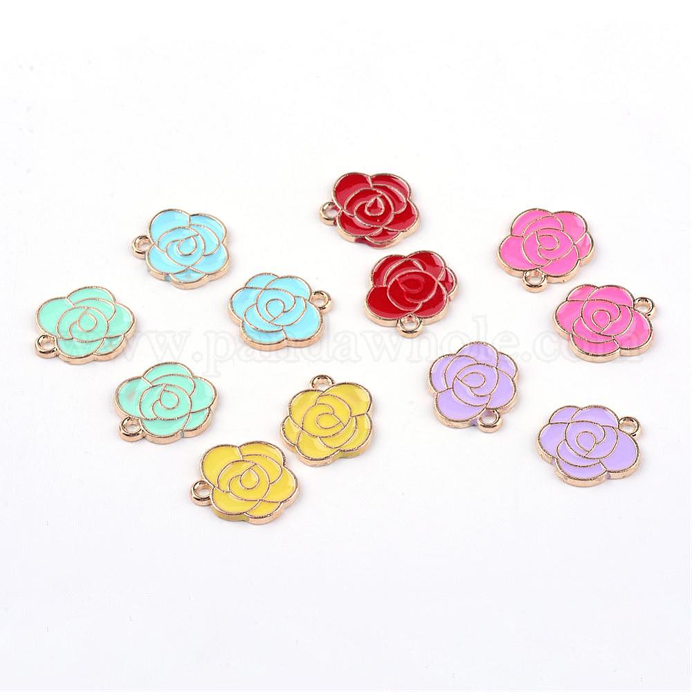 Светло-золотого сплава эмали подвески, цветок, 15.5x14.5x1.5 мм, отверстие : 2 мм