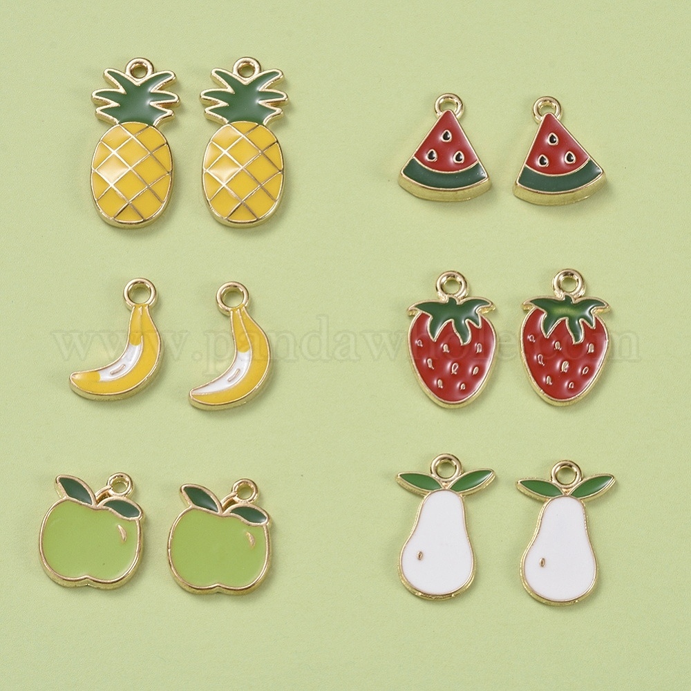 Тема фруктов, Подвески из эмали и сплава, банан, яблоко, арбуз, клубника, ананас, груша, золотой свет (00YQ46)