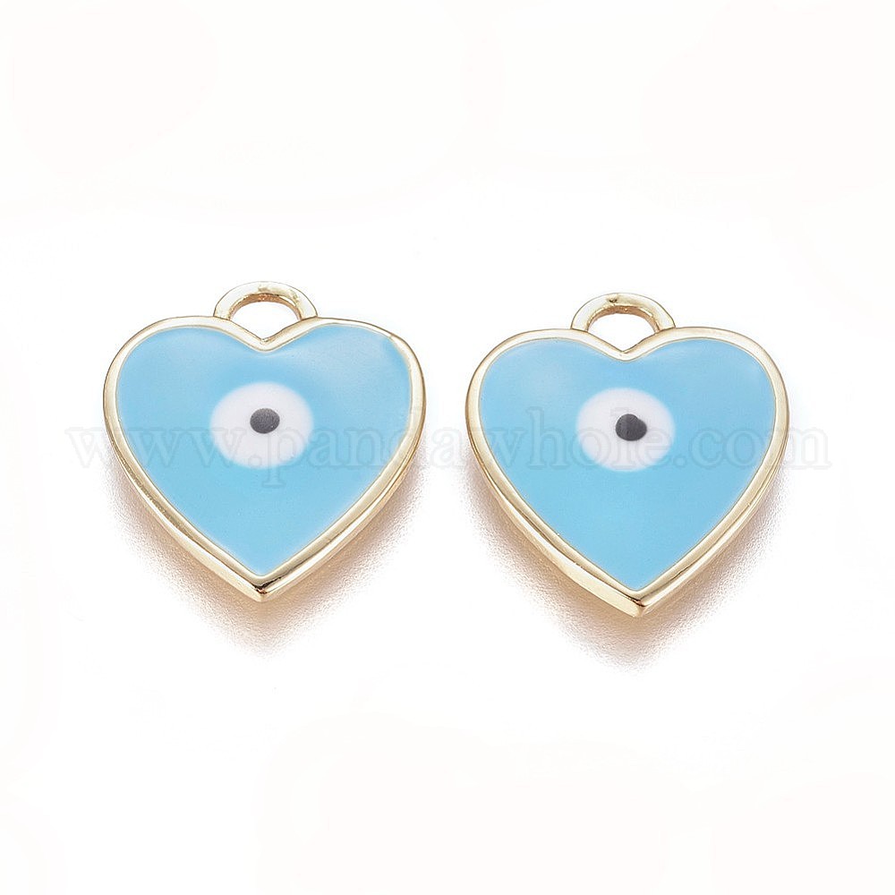 Золотые тона латунные подвески, с эмалью, сердце с сглаза