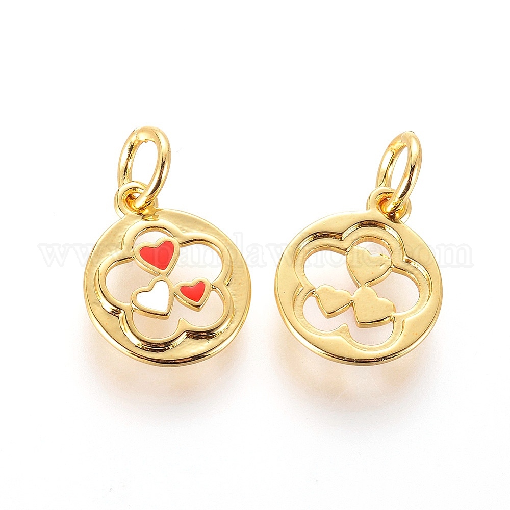 Эмалевые чары, с медными находками и кольцами для прыжков, плоский круг с цветком и сердцем