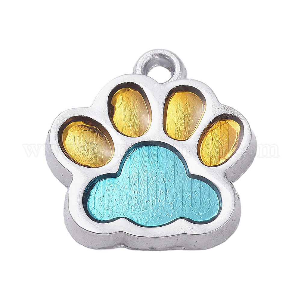 • Небесно-голубой Подвески из эмали и сплава, два тона, собака отпечатки лап, платина, голубой, 17.7x16.6x2 мм, отверстие : 2 мм