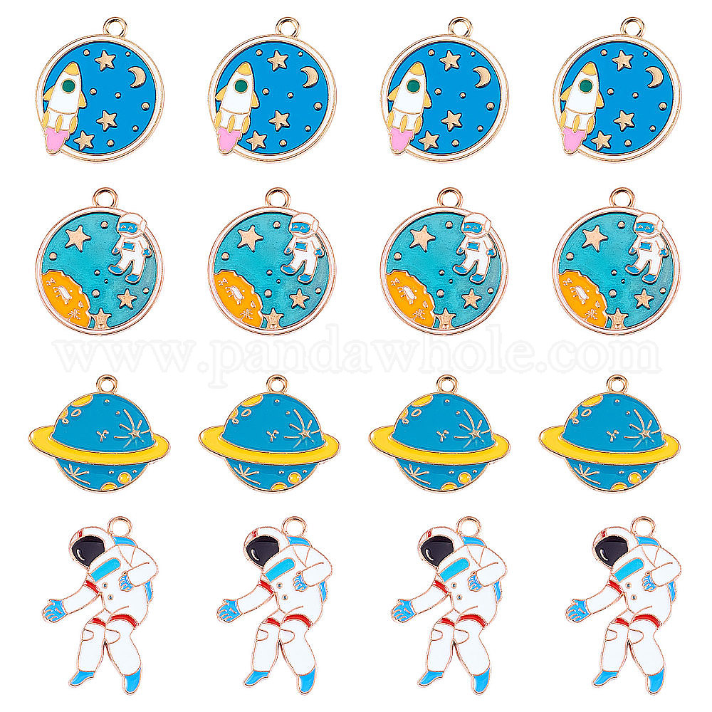 Эмали сплава большие кулоны, планета, плоский раунд с космонавтом и ракетой