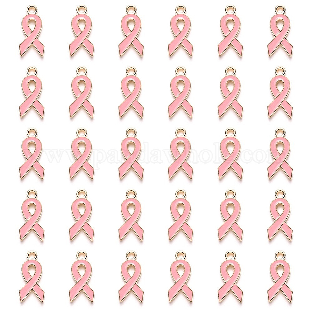 Подвески из эмали и сплава, без кадмия и без свинца, Октябрь Рак молочной железы Розовая форма ленты осведомленности, свет позолоченные
