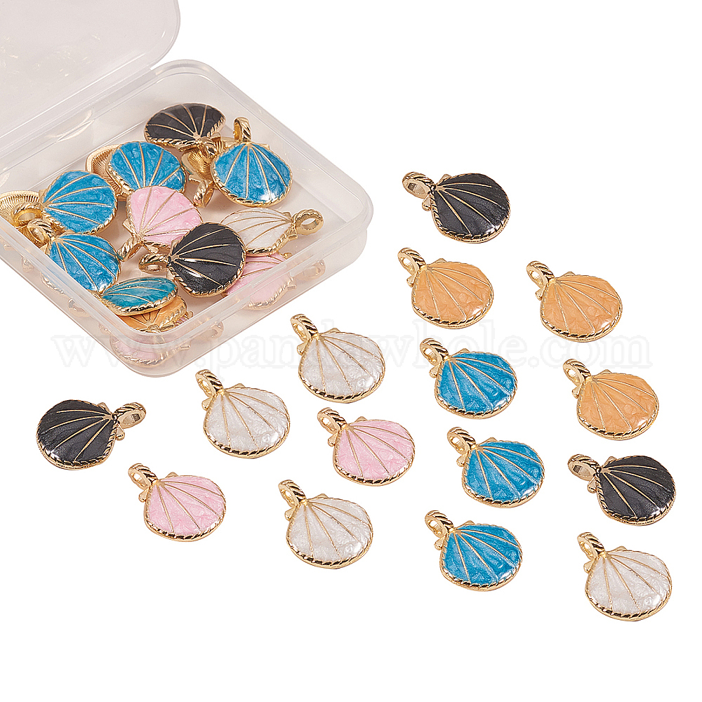 Подвески из эмали и сплава, без кадмия и без свинца, формы раковины, золотой свет