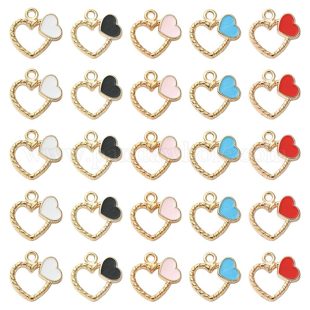 Подвески из эмали и сплава, сердце кольцо с сердцем, золотые
