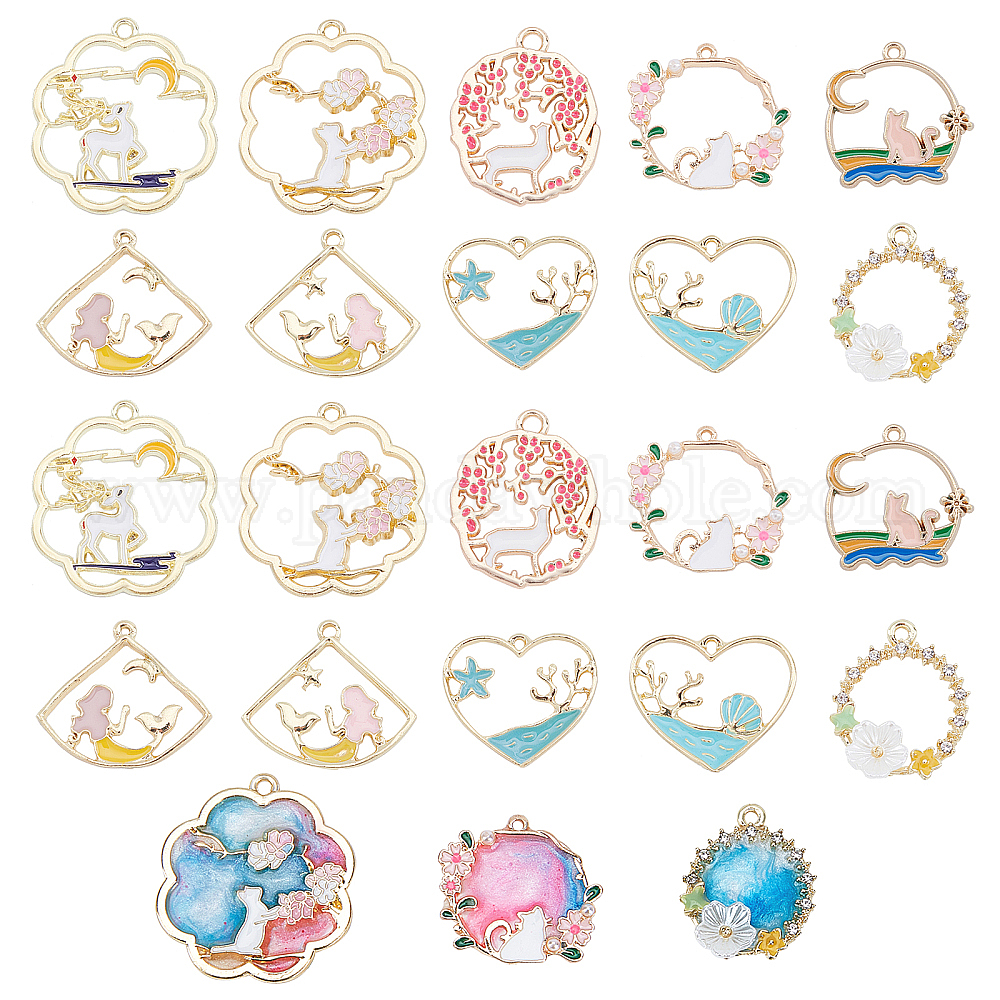 Подвески из эмали и сплава, разнообразные, светлое золото и золотой