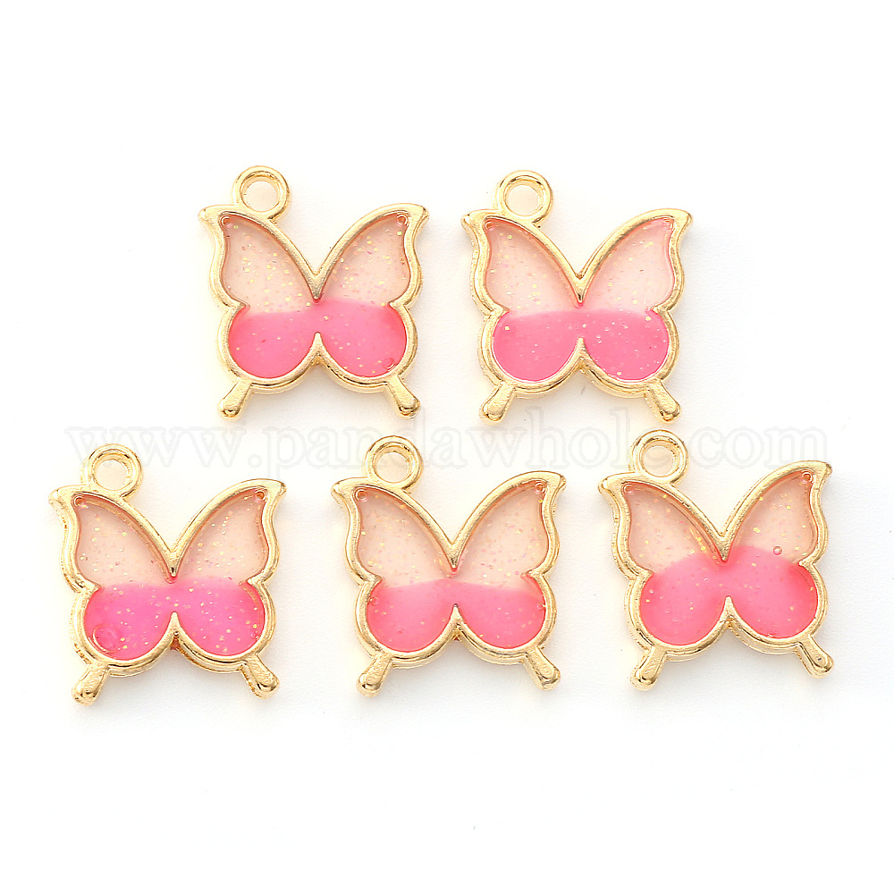 Подвески из эмалевого сплава с покрытием из легкого золота, с блестками, бабочка