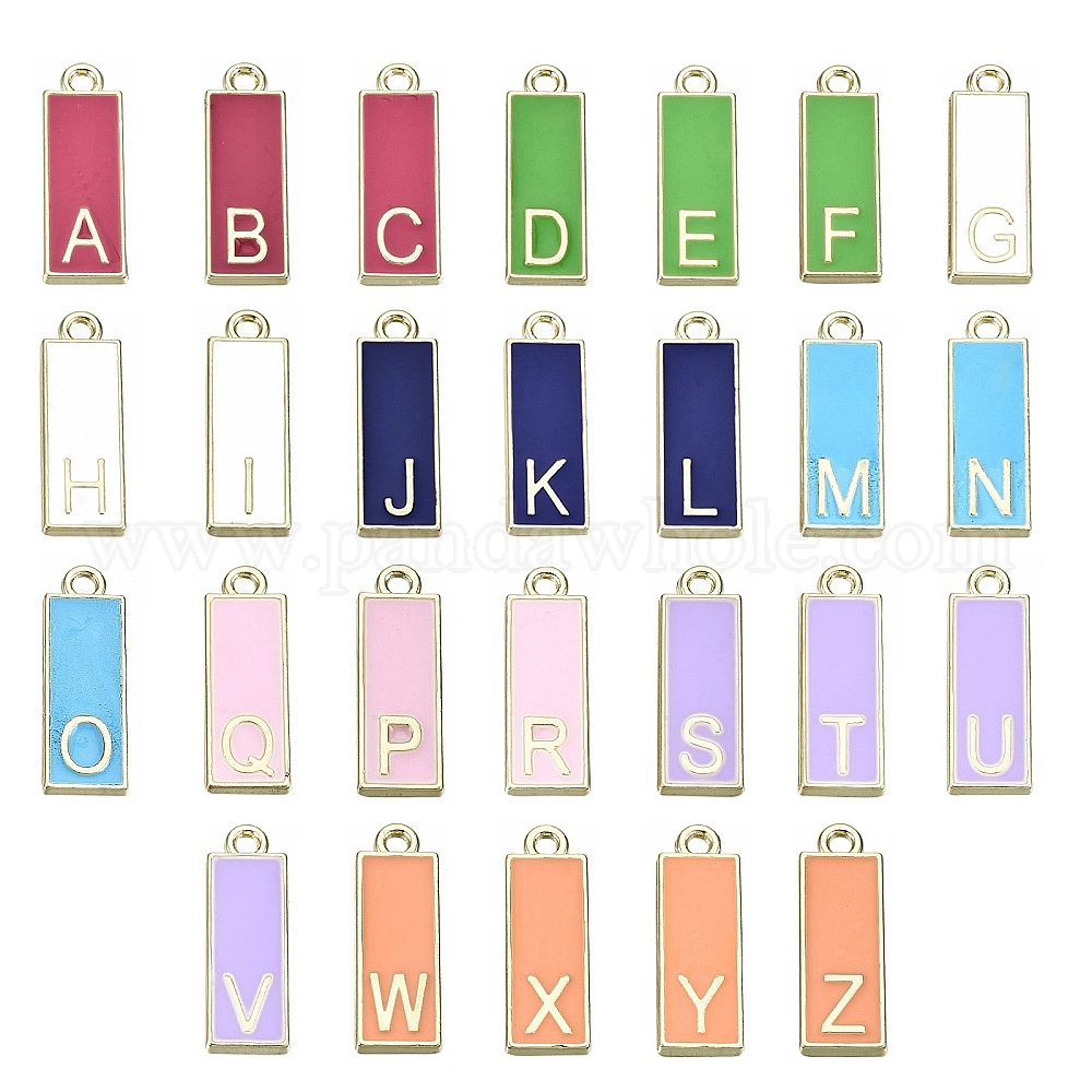 прямоугольная подвеска из сплава с эмалью: длина около 23.5 мм, шириной 8 мм , толщиной 2 мм , отверстие : 1.8 мм, 26 стиль, 1 шт / стиль, 26 шт;