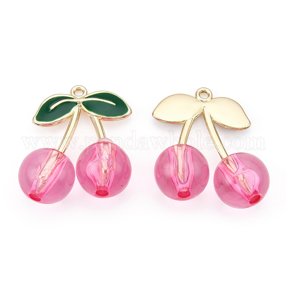 Платиновым покрытием сплава эмали подвески, с прозрачным акрилом, без кадмия и без свинца, 3 d вишня с зеленым листом