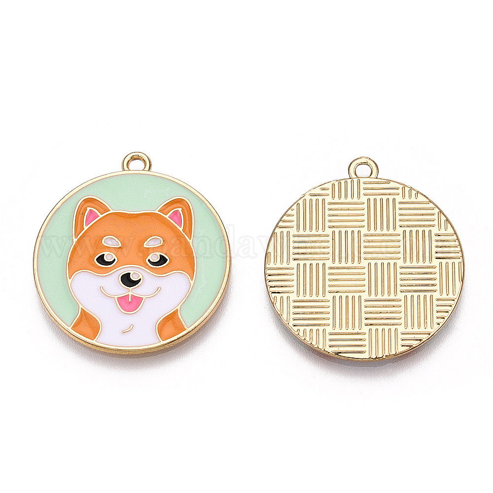 Подвески из экологически чистого сплава с эмалью, без кадмия и без свинца и без никеля, плоский круглый с шиба ину, золотой свет (02785S)