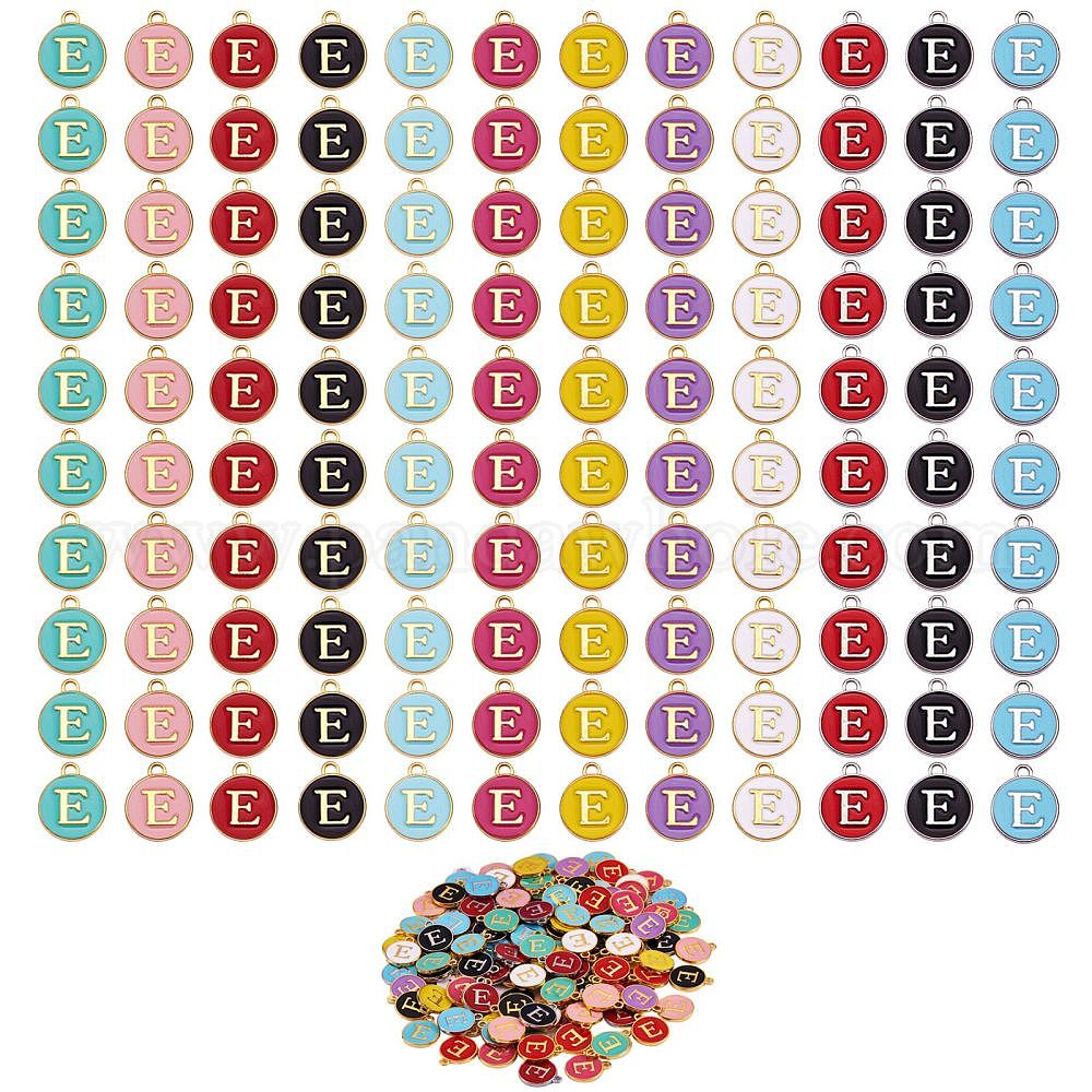 плоские круглые с буквами позолоченные подвески из сплава с эмалью: 12 мм в ширину, 14 мм длиной, толщиной 2 мм , отверстие : 1.5 мм, 12 цветов, 10 шт / цвет, 120 шт;