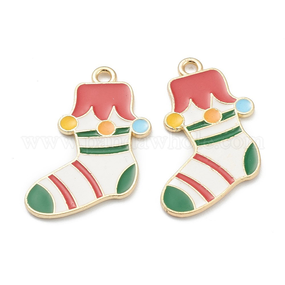 Подвески из эмали и сплава, на Рождество, свет позолоченные, Рождественский чулок