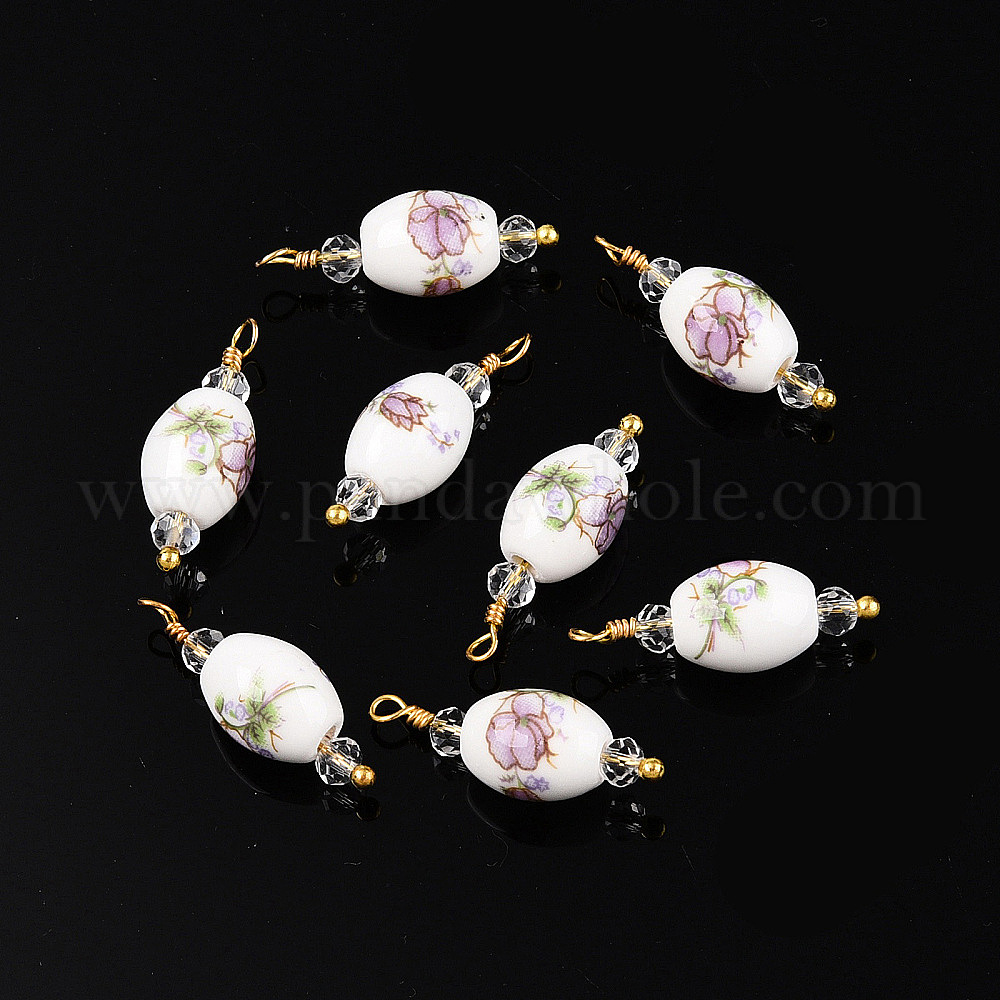 Фарфора ручной работы подвески, с латунной фурнитурой , реальный 18 k позолоченный, бочка с цветочным узором подвески