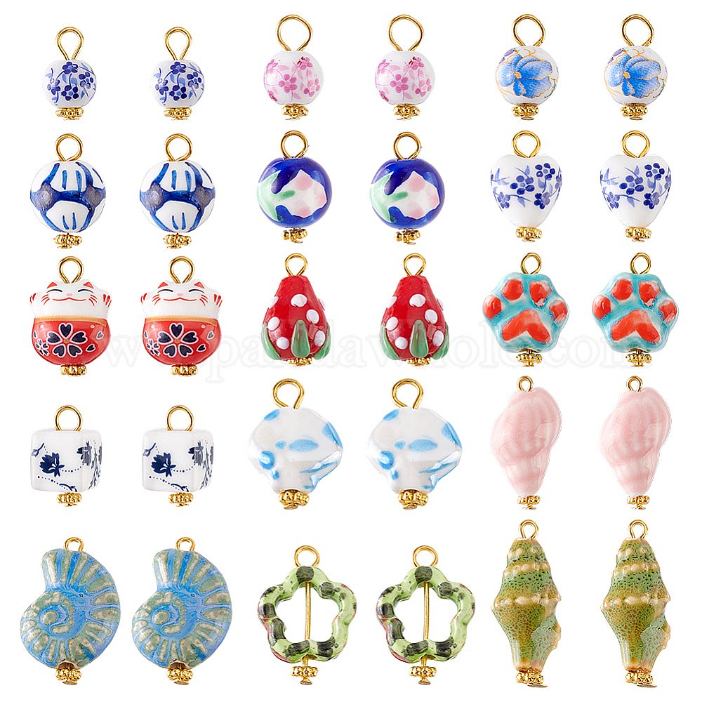 30шт 15 стильные фарфоровые подвески ручной работы, с железной фурнитурой