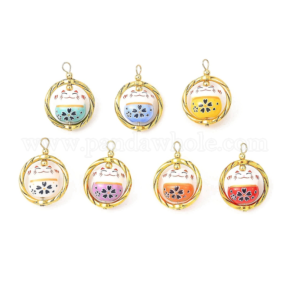 Фарфора ручной работы подвески, форма кошки, со связующими кольцами из сплава