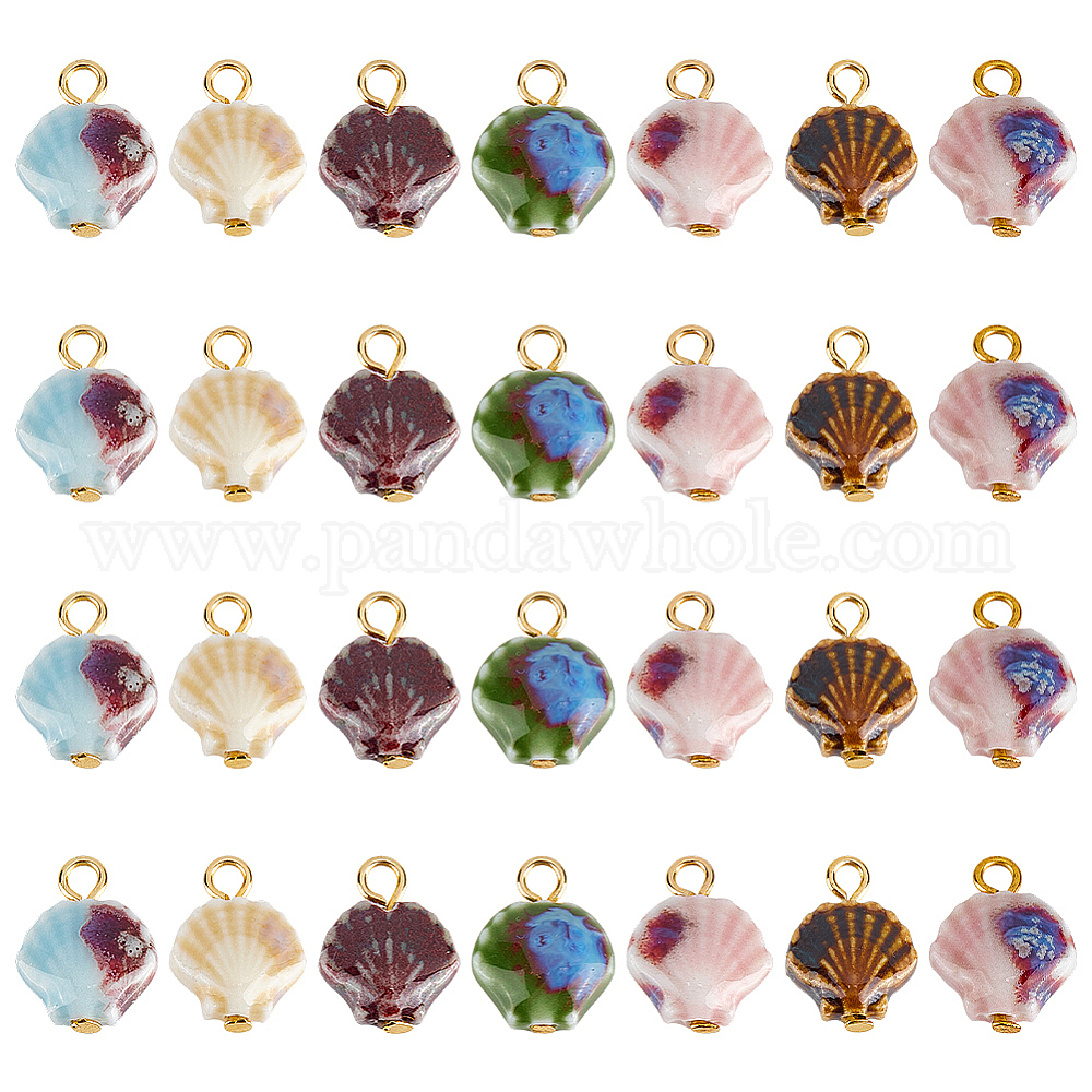 28 шт. 7 стильные подвески из яркого глазурованного фарфора ручной работы, с 304 фурнитурой из нержавеющей стали, формы раковины, золотые