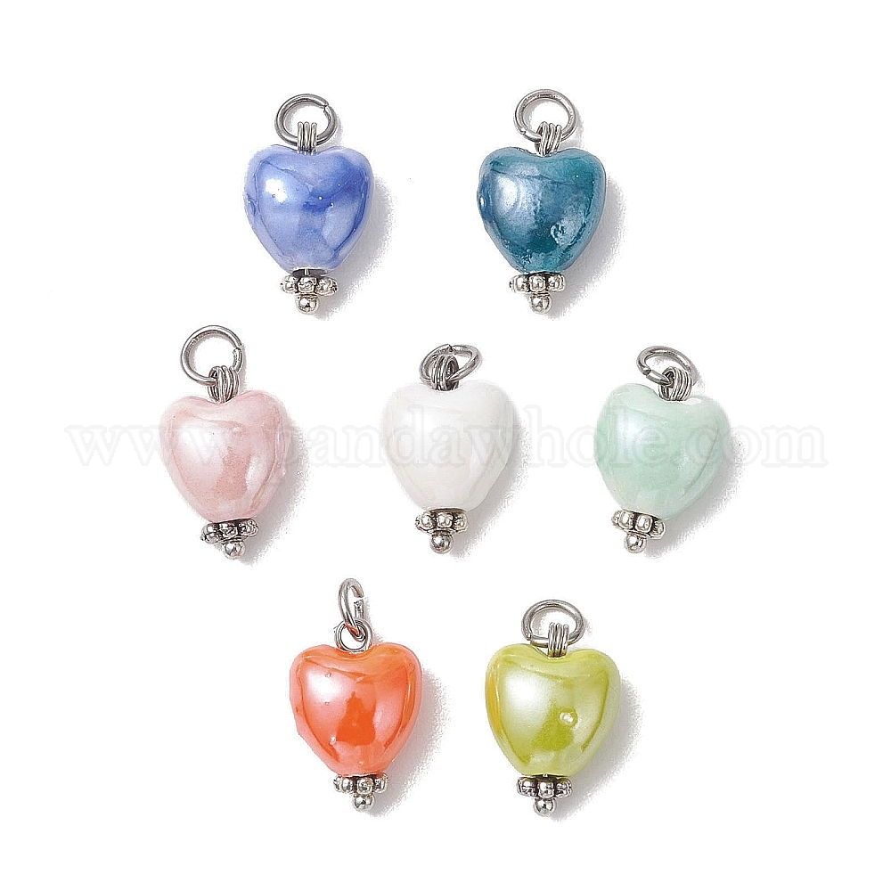 Подвески из перламутрового фарфора ручной работы, сердце прелести, с 304 кольцом из нержавеющей стали