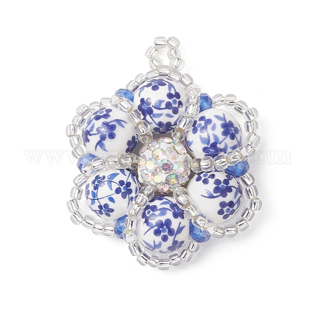 Керамические изделия ручной работы из фарфора с печатным рисунком и подвесками из стекла в форме семян.,