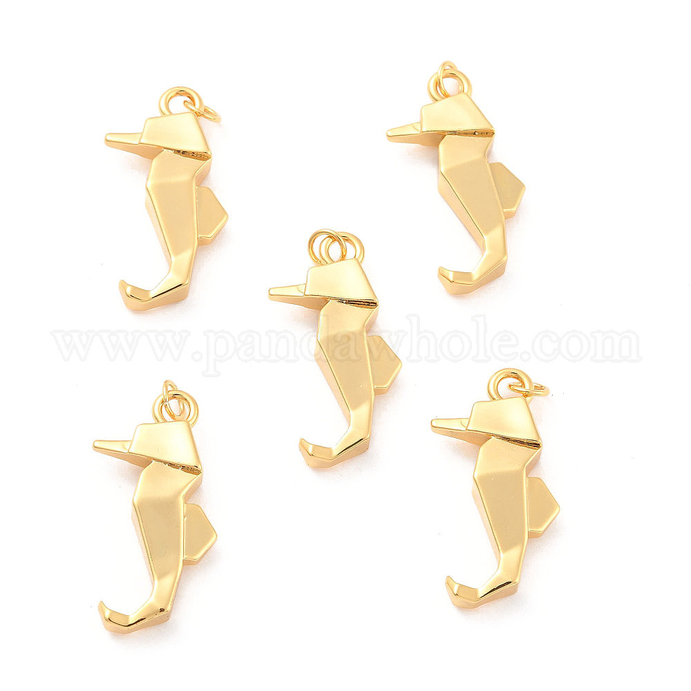 • Настоящее золото 18K Стойки обшивки латунные подвески, долговечный, без кадмия, без никеля и без свинца, гиппокамп, реальный 18 k позолоченный, 30x14x5 мм, Перейти кольцо: 5x0.6 мм, 3.5 мм внутренним диаметром