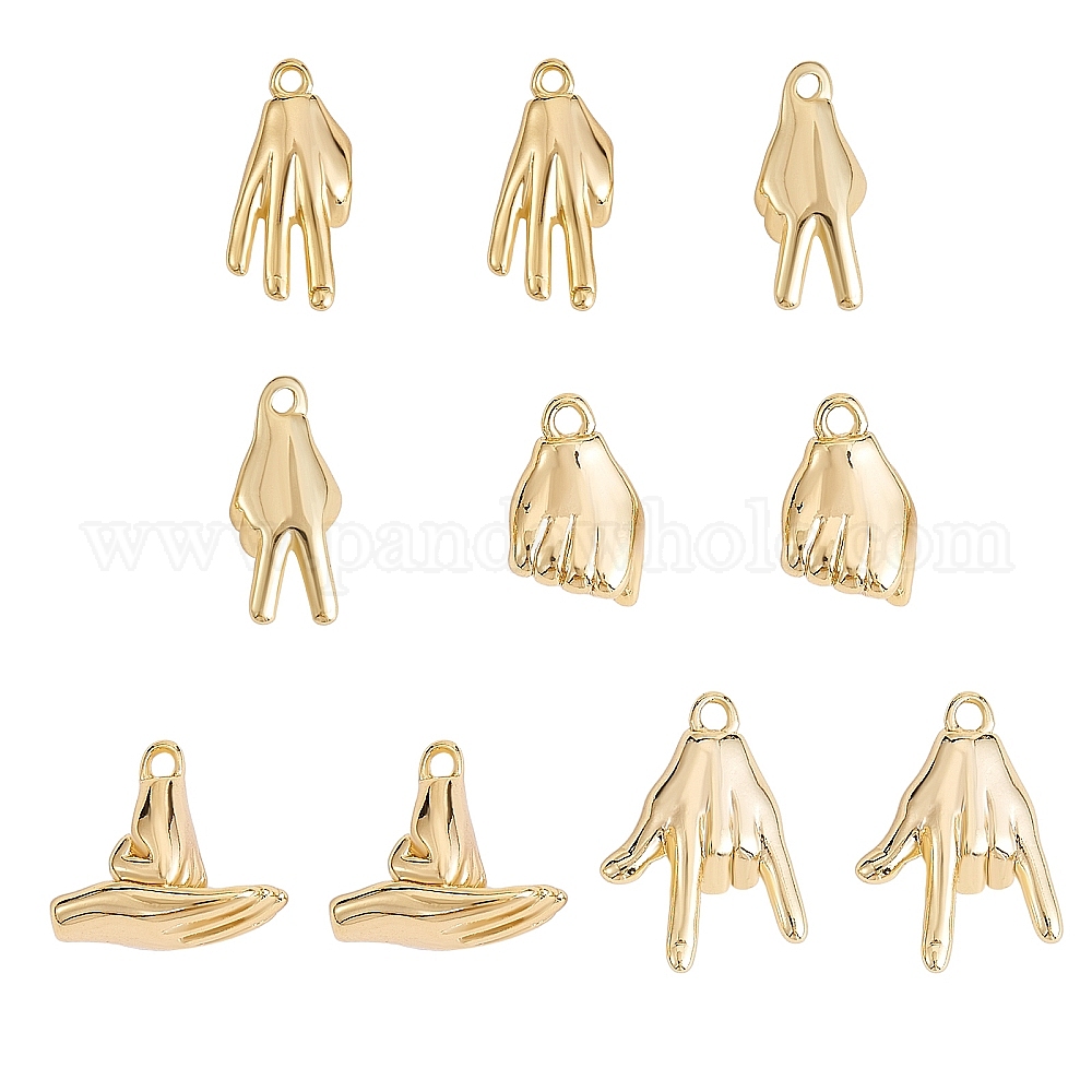 10шт 5 стиль латунные подвески, без никеля , сливовый, язык жестов, палец сердце и победа и держать кулак салют