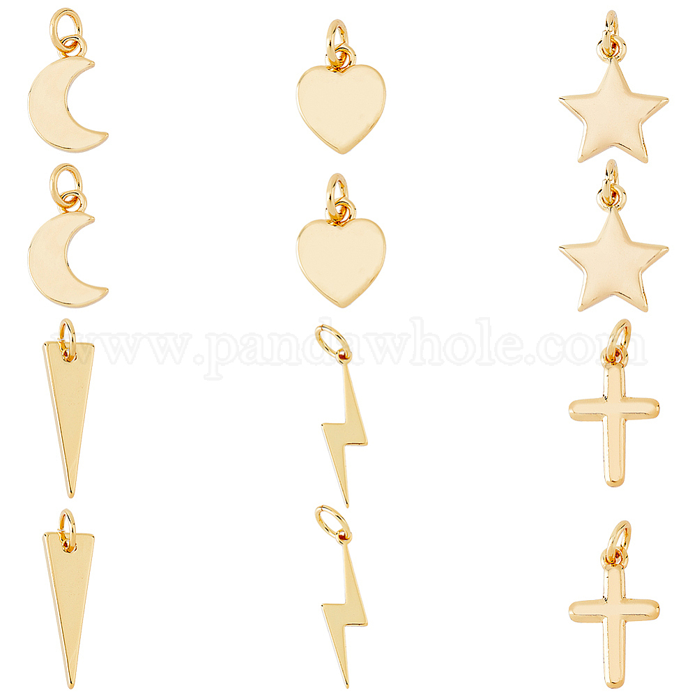 12 шт 6 стиль латунные подвески, с целью перехода в кольце, долговечный, луна и сердце и звезда и крест и молния и треугольник
