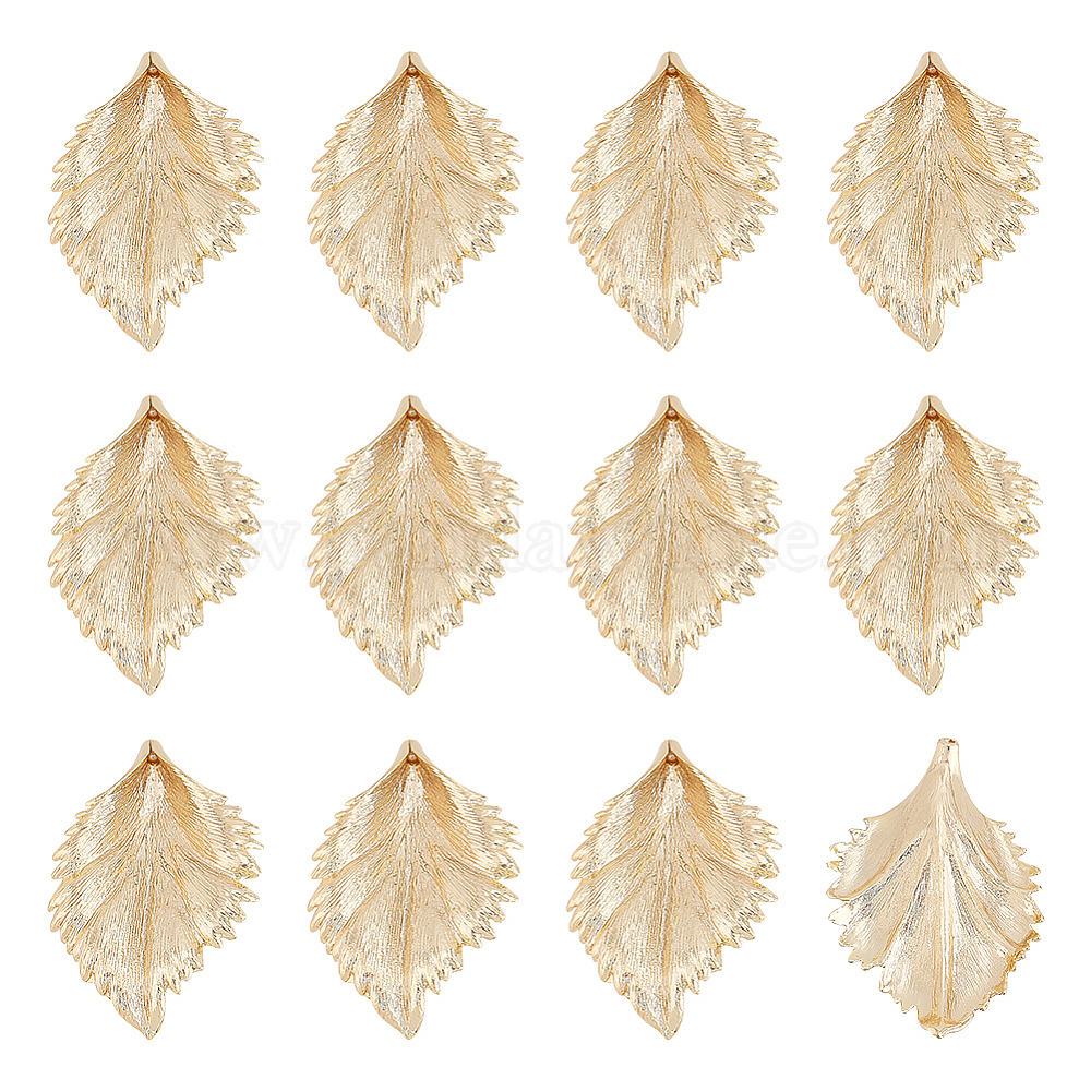 • Настоящее золото 18K Латунные подвески, лист, реальный 18 k позолоченный, 43x29x6 мм, отверстие : 1.2 мм, Около 12 шт / коробка