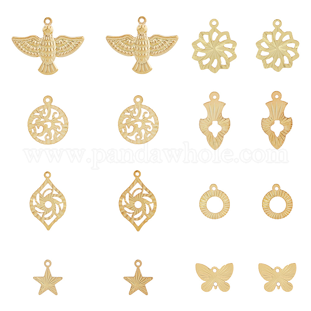64 шт. 16 латунные подвески с покрытием в виде стойки, долговечный, звезда и кольцо и бабочка