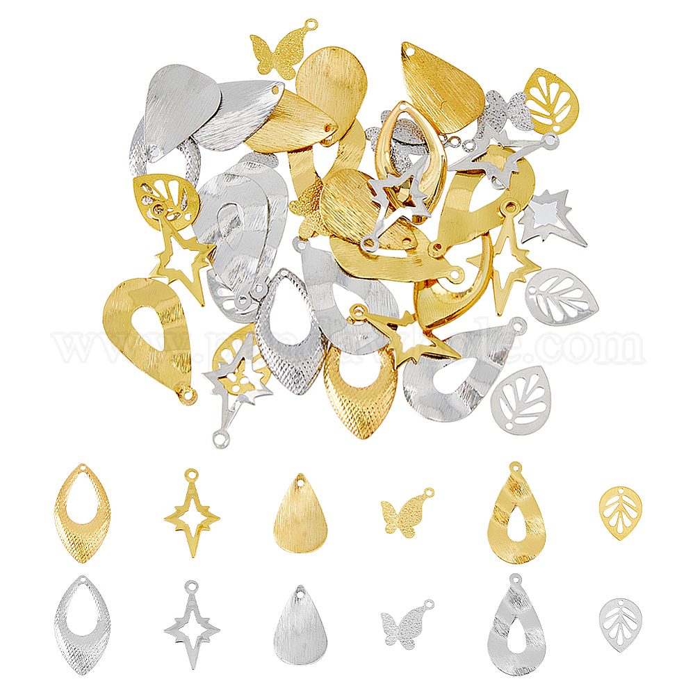 48 шт. 12 латунные подвески с покрытием в виде стойки, долговечный, слеза и звезда и бабочка и лист