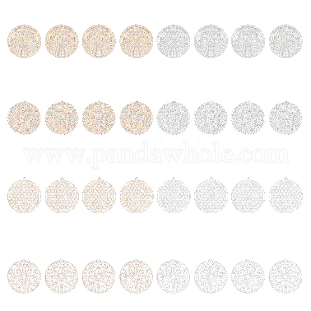 32шт 8 стиль стойка покрытие латунные филигранные подвески, долговечный, плоские круглые с цветком