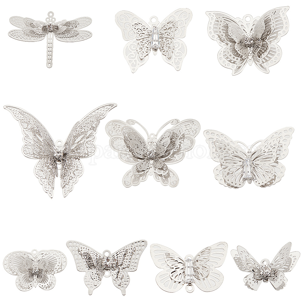 20шт. 10 стиль латунные филигранные подвески и филигранные соединительные звенья наборы, с кристально горный хрусталь, 3 d бабочка