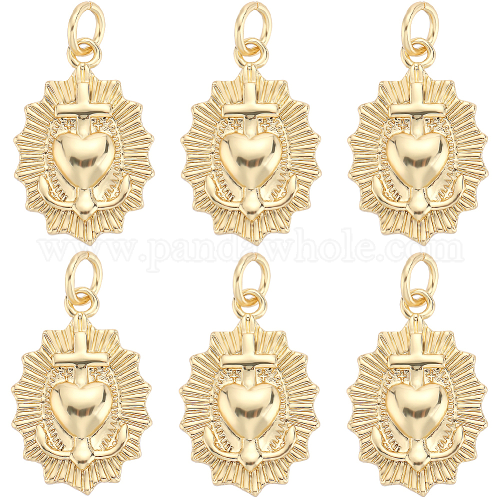 6 латунные подвески шт., с прыжковых колец, без кадмия и без свинца, долговечный, овальные с сердцем