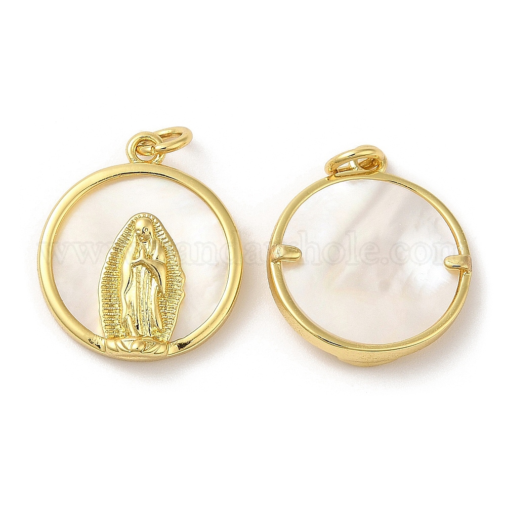 Кулоны из экологически чистой латуни, с кольцом и оболочкой, без свинца и без кадмия, плоский круглый со святым шармом (02JW6W)