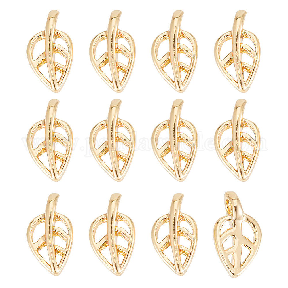 • Настоящее золото 18K 60 шт. Латунные подвески, лист, реальный 18 k позолоченный, 9.5x5.5x3.5 мм, отверстие : 1.5 мм