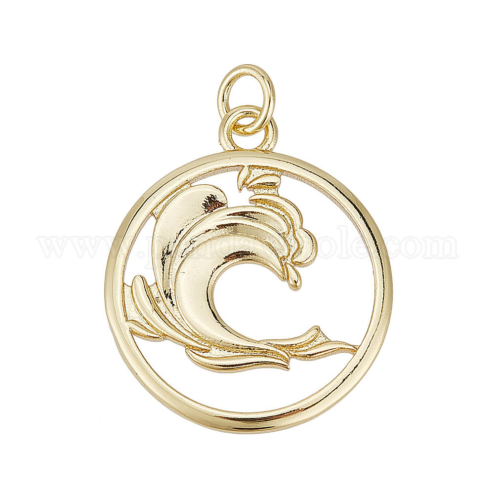 10 латунные подвески шт., с целью перехода в кольце, долговечный, плоские круглые с волной