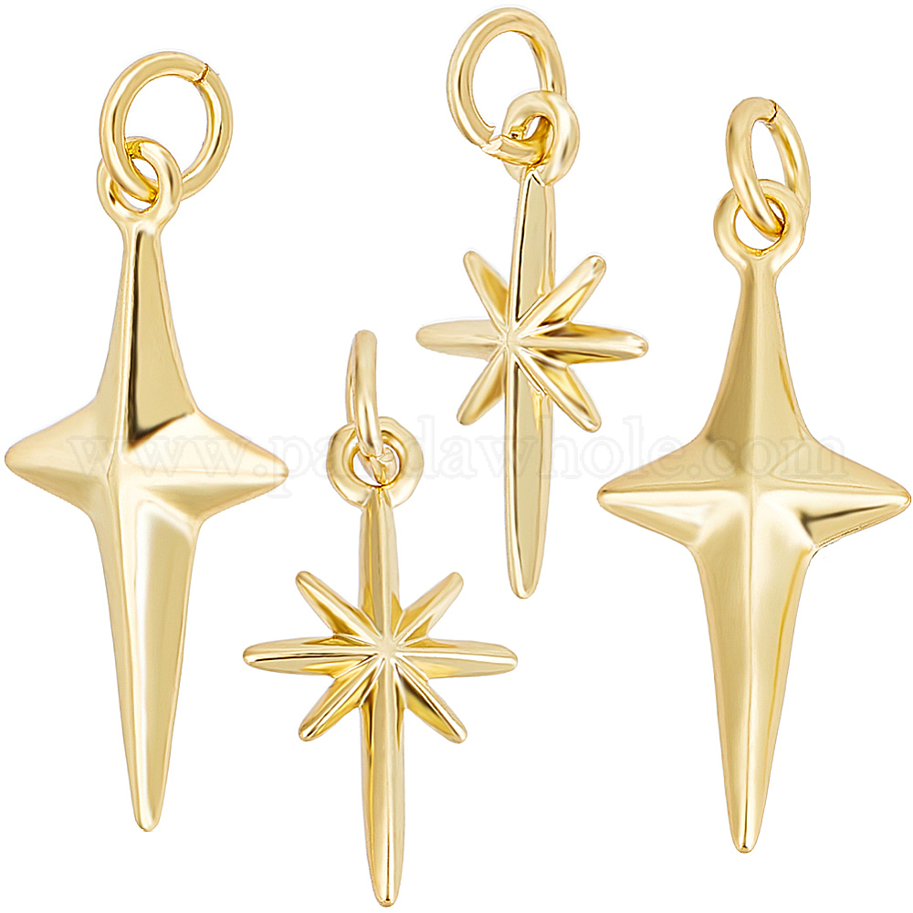 • Настоящее золото 18K 12 шт 2 стиль латунные подвески, с прыжковых колец, звезда, реальный 18 k позолоченный, 17~23x9.7~10.5x2.5~4 мм, отверстие : 3~3.4 мм, 6 шт / стиль