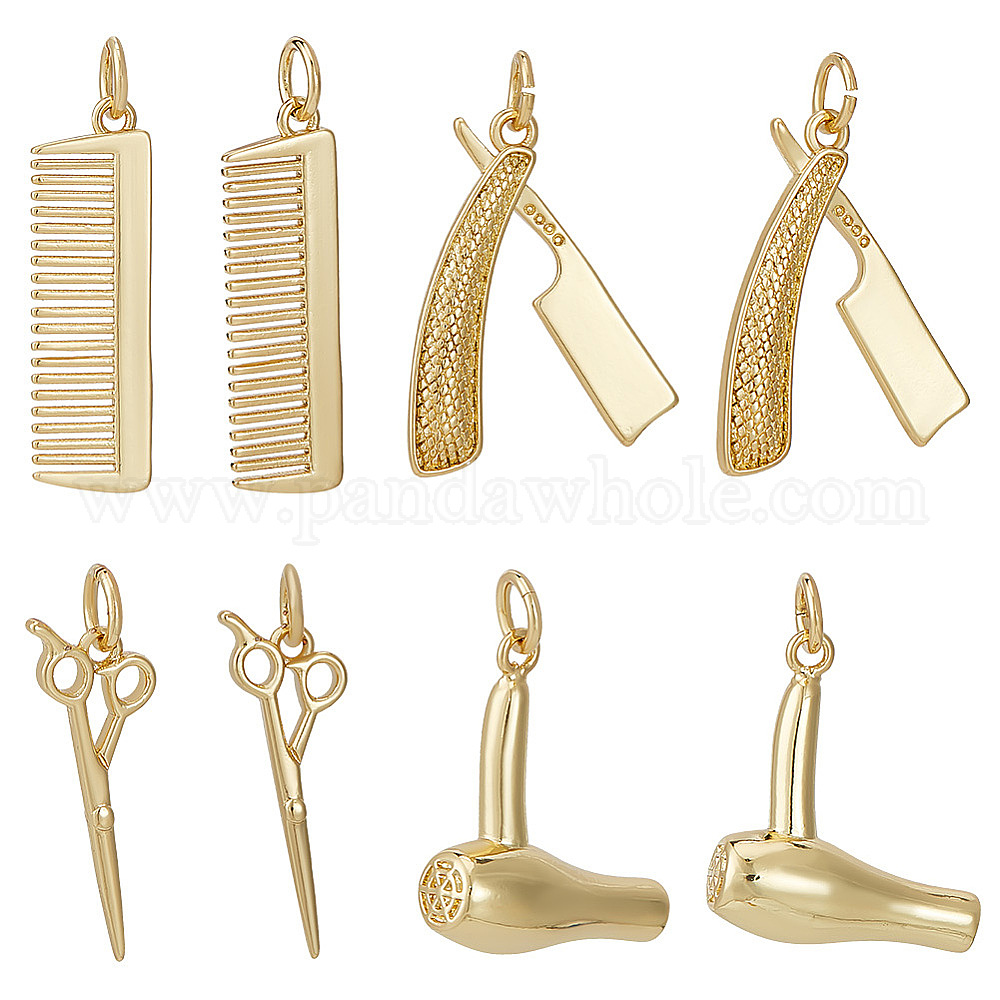 8 шт 4 стиль латунные подвески, с прыжковых колец, без кадмия и без свинца, долговечный, инструменты парикмахера