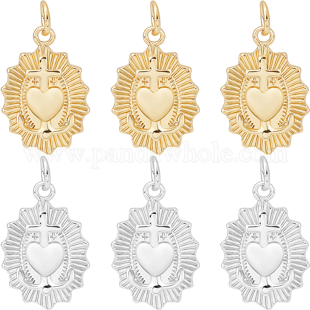 8 шт. 2 цвета латунные подвески, с целью перехода в кольце, без кадмия и без свинца, священное сердце с крестом