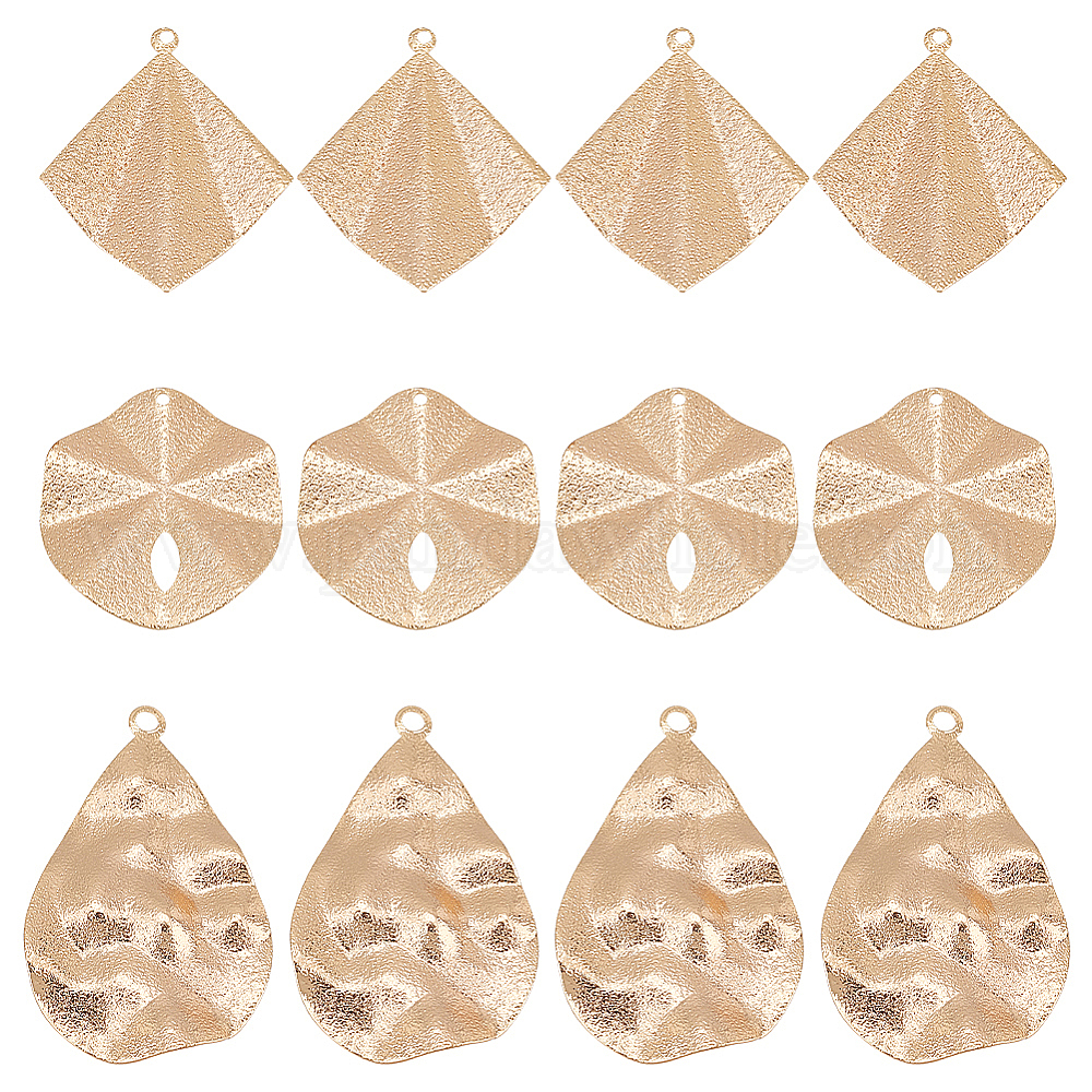 12шт. 3 стили латунные текстурированные подвески, завивать, без никеля , ромб/многоугольник/капля