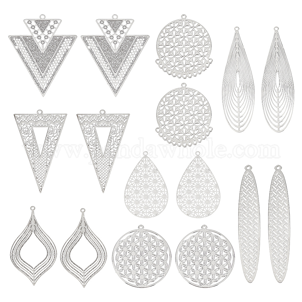 32шт 8 стили латунные филигранные подвески, долговечный, разнообразные