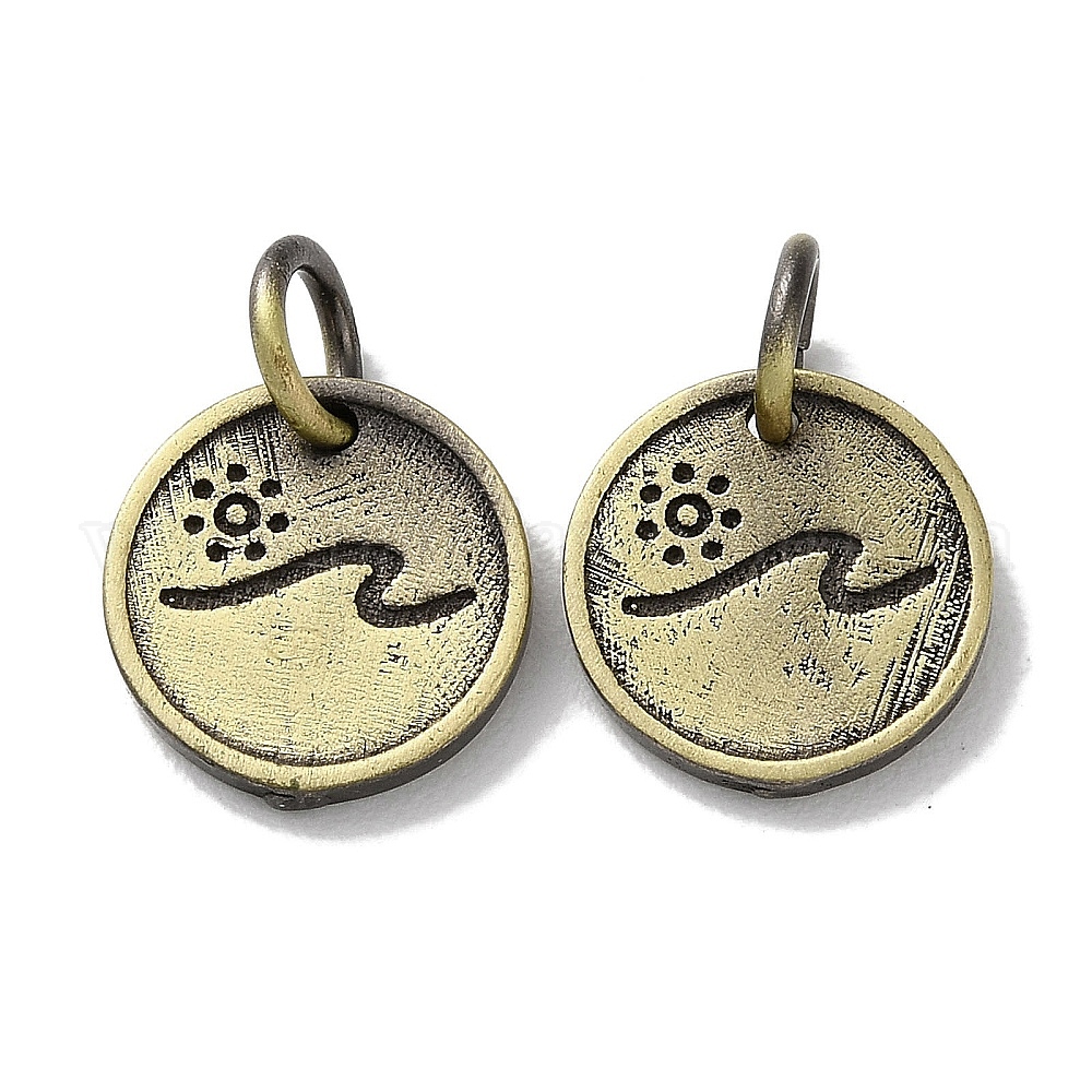 • Античная Бронза Тибетский стиль латунные подвески, без кадмия и без свинца, круглый с солнцем, античная бронза, 12x11.5x1.5 мм, отверстие : 4 мм