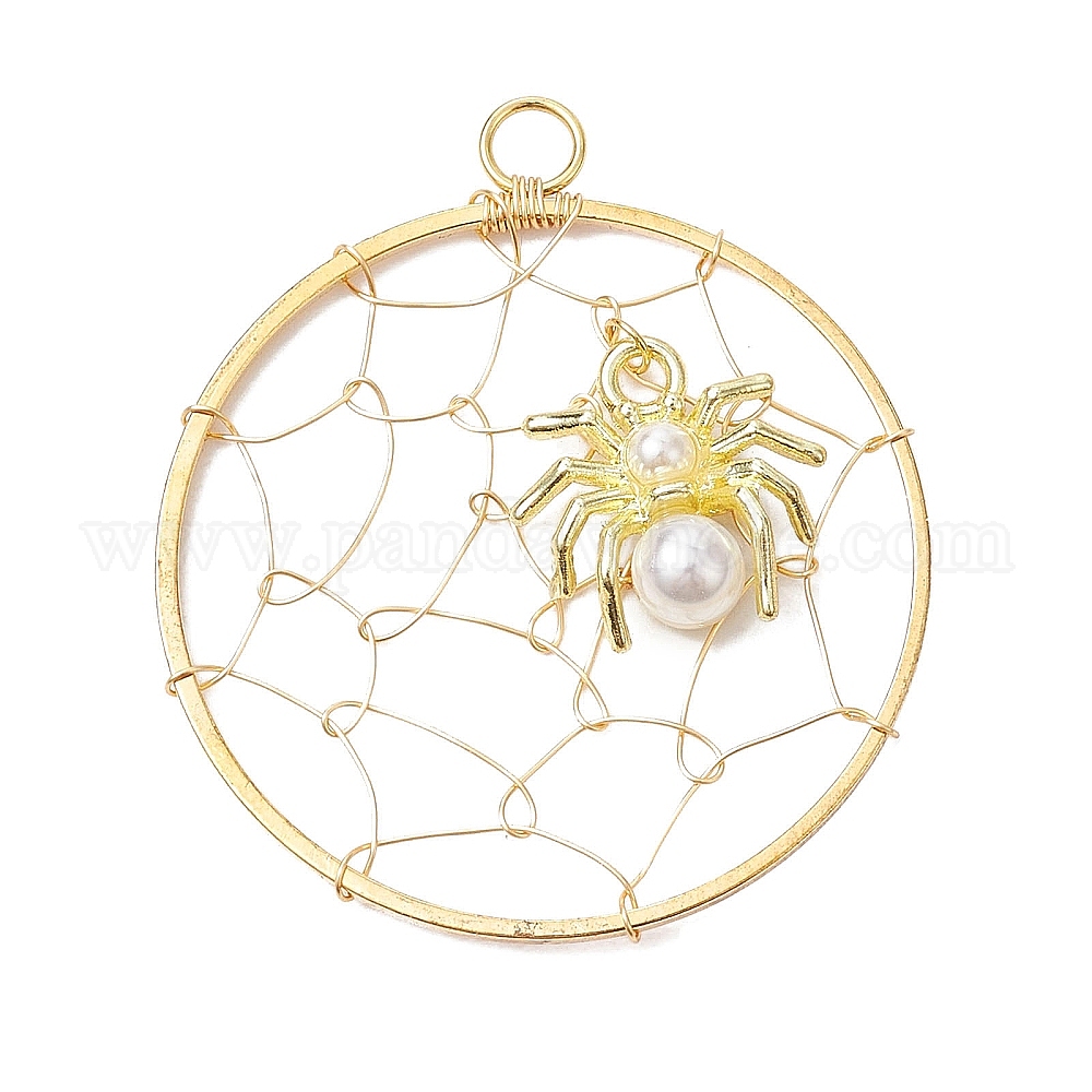 Акриловые подвески из медного сплава, плоские круглые с пауком
