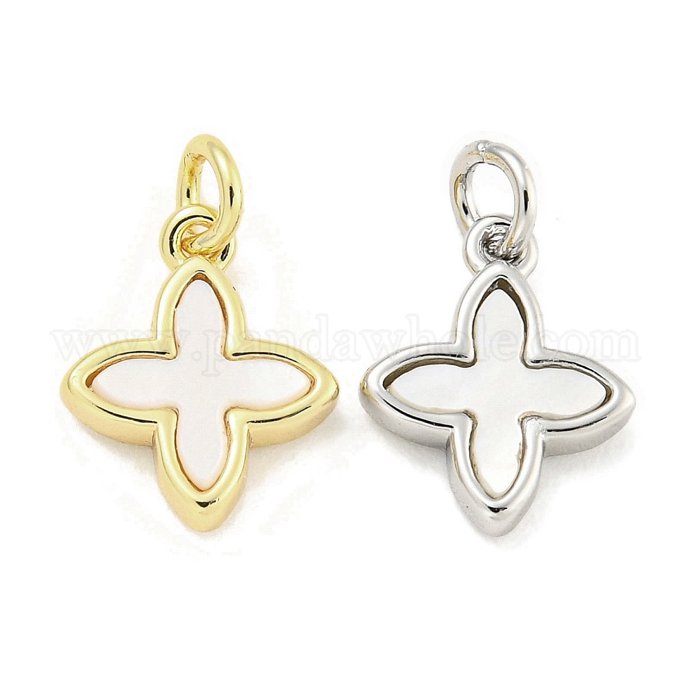Латунь с подвесками в виде морских ракушек, с прыжковых колец, без кадмия, без никеля и без свинца, крестик, белые