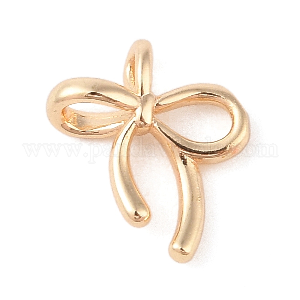 • Золотой Латунные подвески, очарование бантом, золотые, 15x13x4.5 мм, отверстие : 1.4 мм